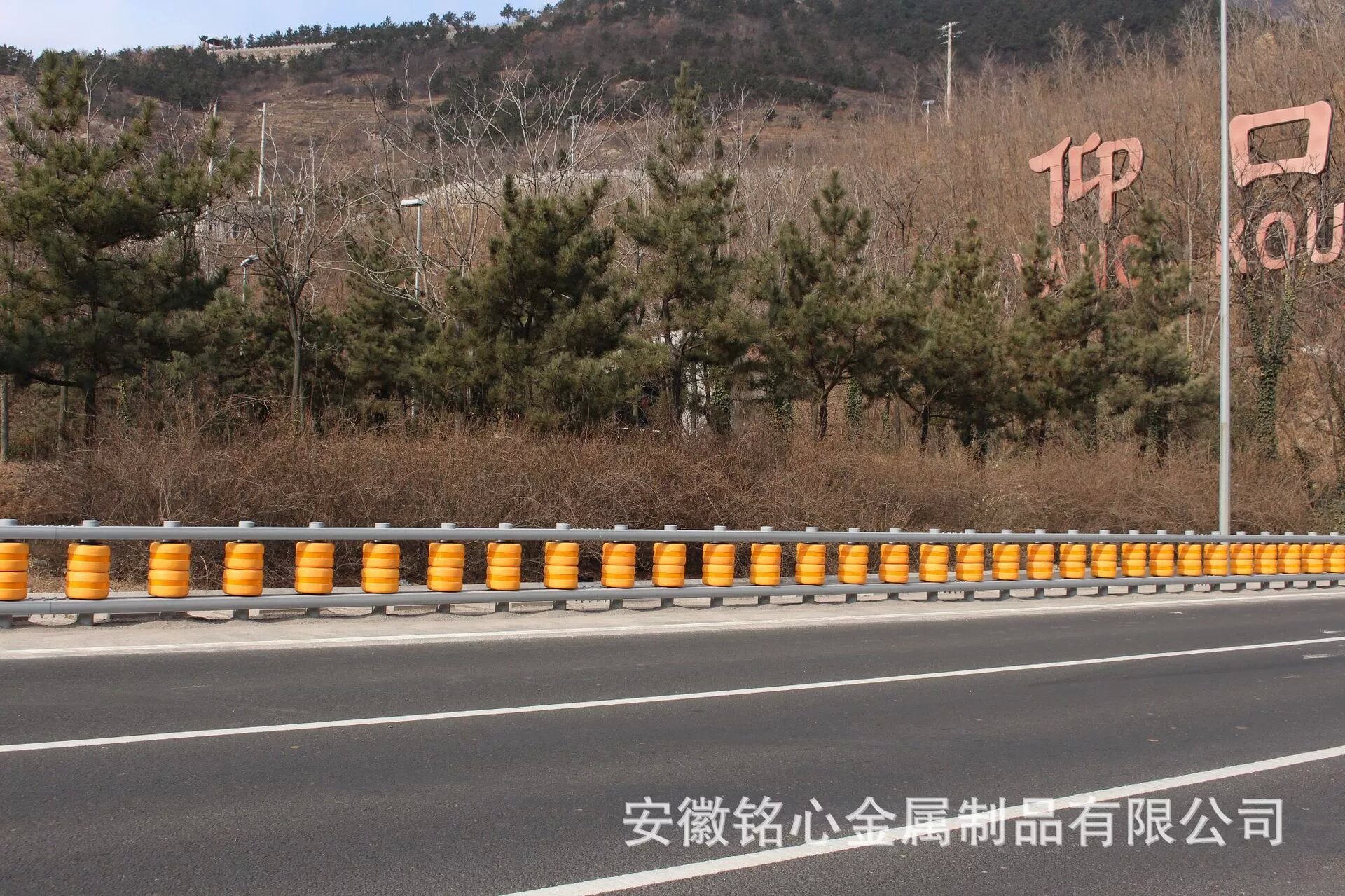 該護(hù)欄由立柱、旋轉(zhuǎn)桶、U型橫梁和連接件組成,所有鋼構(gòu)件均采用熱鍍鋅防銹處理。