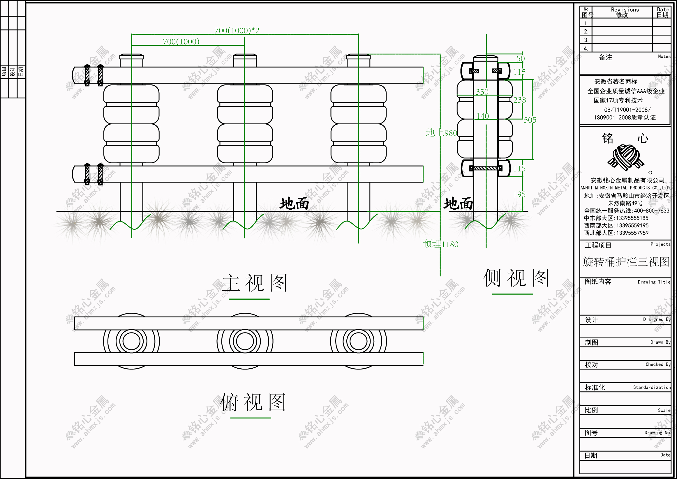 該護欄由立柱、旋轉桶、U型橫梁和連接件組成,所有鋼構件均采用熱鍍鋅防銹處理。