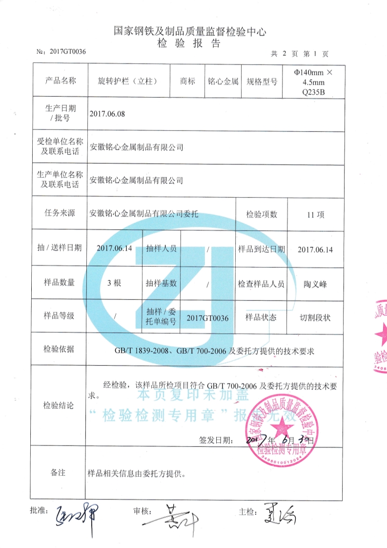 旋轉(zhuǎn)護(hù)欄立柱檢測(cè)報(bào)告