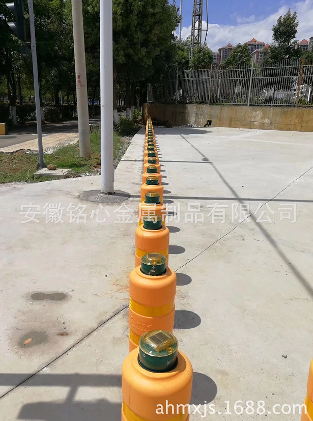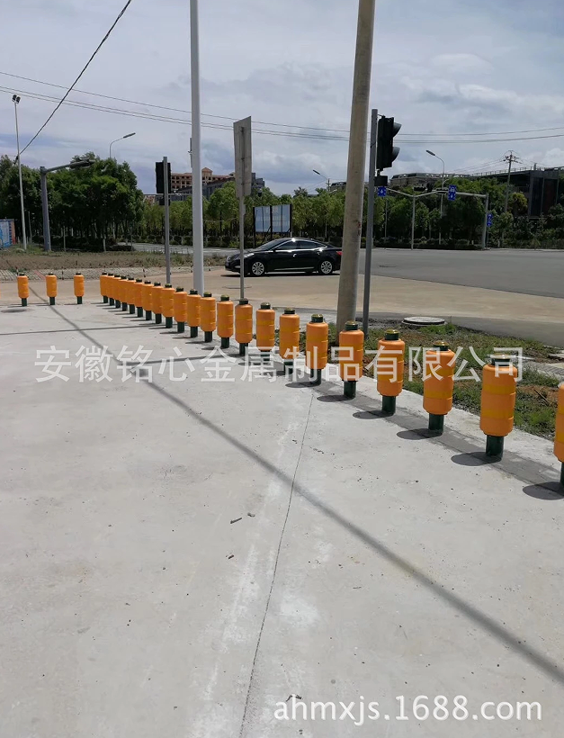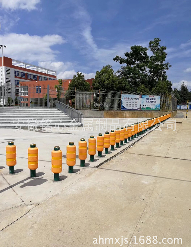 昆明校園門口安全島——旋轉(zhuǎn)警示樁安裝完成