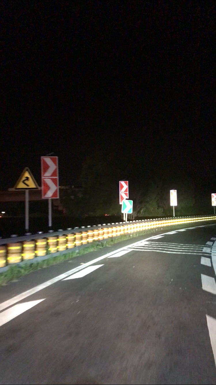 旋轉桶上貼有反光條,夜間行車時,通過燈光的照射,能夠較好的反映出路線的輪廓,對車輛起到較好的視線誘導作用,進一步保證了行車的安全。