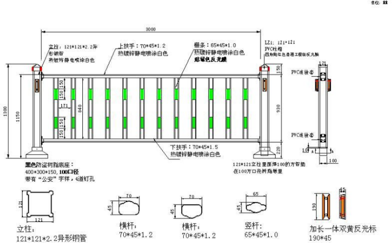 3、阻攔功能:交通護欄將阻攔不良的交通行為,阻攔試圖橫穿馬路的行人或自行車或機動車輛。它要求護欄有一定的高度,一定的密度(指豎欄),還要有一定的強度。