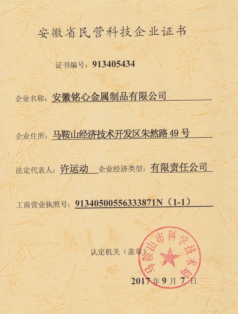 Copyright © 2017 All Right Reserve 安徽銘心金屬制品有限公司網站