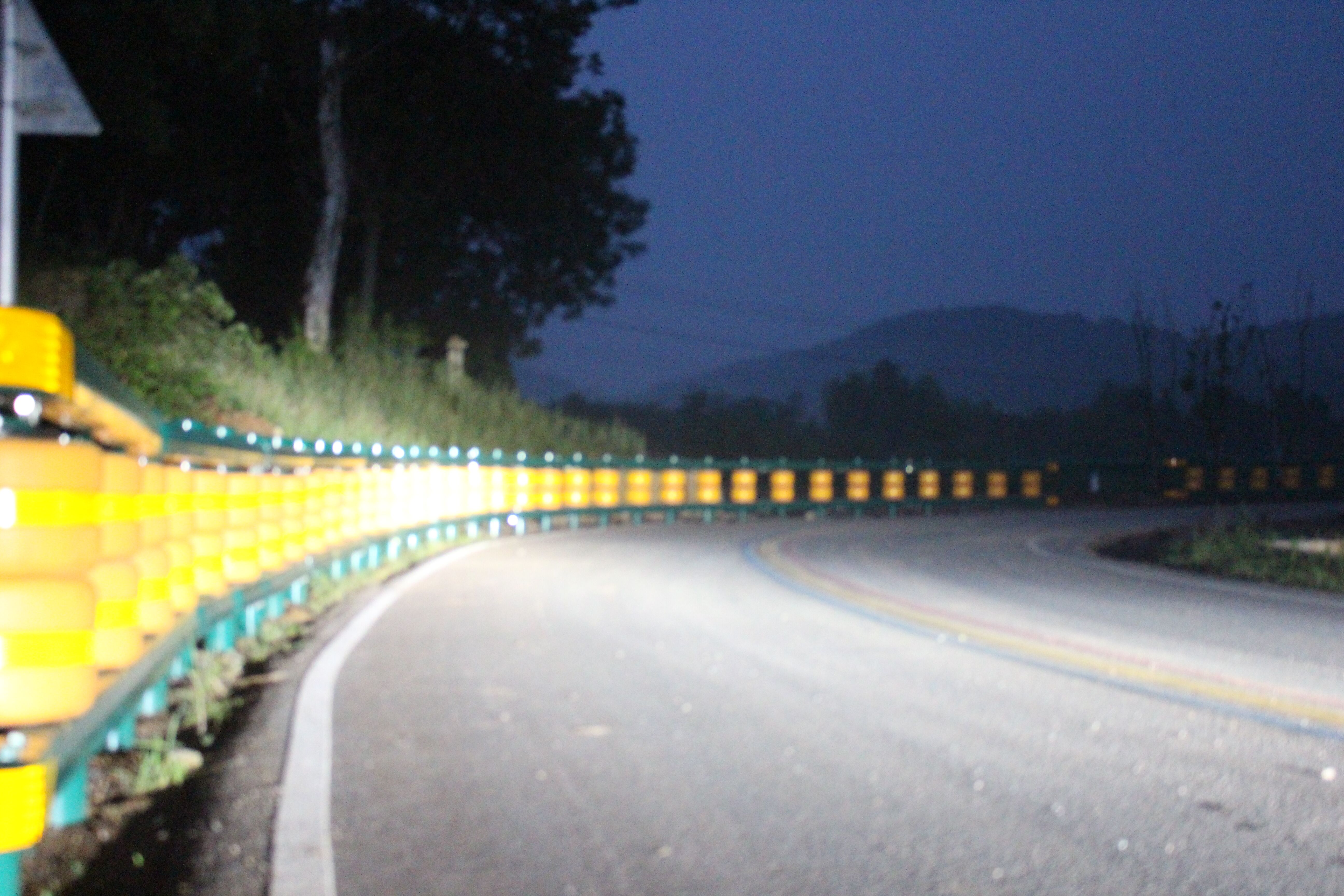 滾筒式旋轉護欄采用“一柱四欄式”結構加旋轉筒組合。有效的防止汽車穿越護欄,使出行駛車道或者翻車。借助滾筒的旋轉分解汽車撞擊力,使垂直于護欄方向的撞擊力分解到平行于護欄的方向上,被滾筒有效的吸收和減少,從而有效的減輕交通事故造成的傷亡。保護人們的人身安全,提供一種全新的生活保障!
