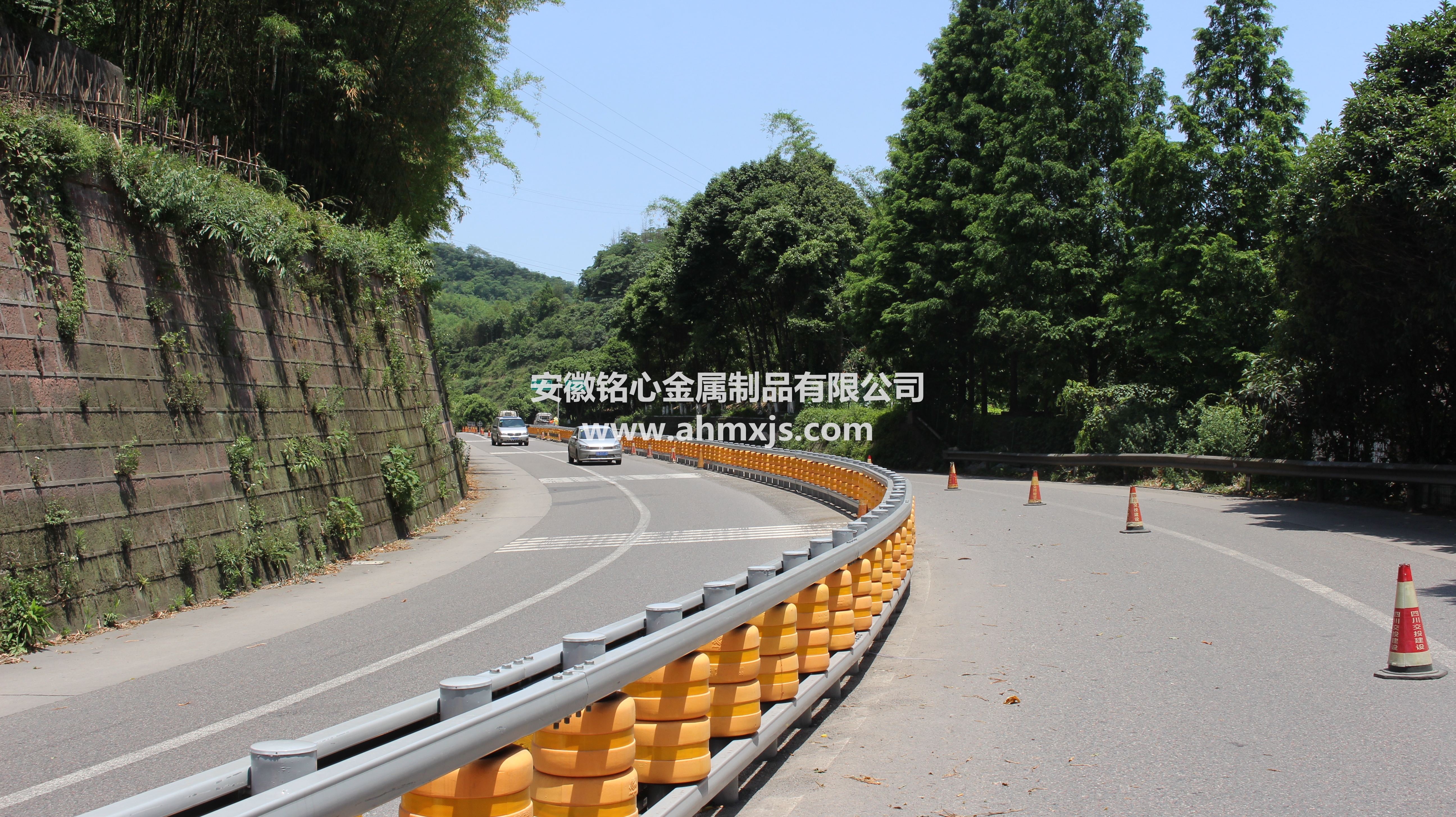 When the car crashed into the guardrail, the rotation of the rolling cylinder itself function and good resilience of cylinder, can greatly reduce the damage degree of the vehicle and driving personnel, have good protection effect.