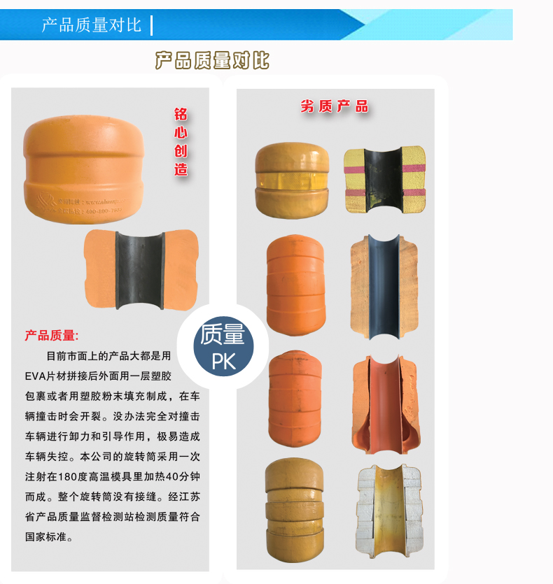 According to market research found that many businesses on the market to promote a lot of rotary barrier, but the industry qualified and qualified qualified businesses rare, mostly filled with foam, there are a lot of security risks. While this fence, R & D organizations using EVC and a dozen new polyurethane composite material barrel form, is not only safe and beautiful. According to the Beijing crash test analysis, single barrel rotation is not large, that is, unloading effect is not good, but a simple buffer effect. Division I professional R & D team on the basis of the new research and development of the double barrel rotary fence, a column up and down two barrels. According to the analysis of the experiment, the impact of small vehicles in the next barrel, large vehicles hit the vat. This invention designed by ten national invention patents, the market is certainly big, we hold one of the greatest pride.