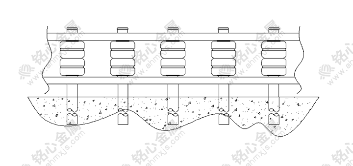 The scheduled installation guardrail lime online vertical vertical two rigid pavement height mark pole, spacing of 10 to 20 meters. At the height of 850.5 mm horizontal stroke pulls a thin line (or with a laser height gauge on the highly illuminate a straight and level) 。